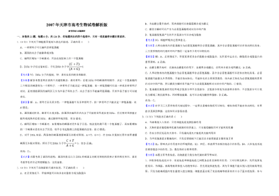 2007年上海市高中毕业统一学业考试生物试卷(答案版).doc