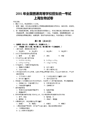 2001年上海市高中毕业统一学业考试生物试卷(答案版).doc