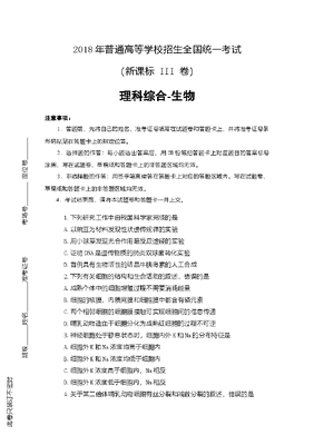2018年高考真题——理综生物(全国卷Ⅲ)+Word版.doc