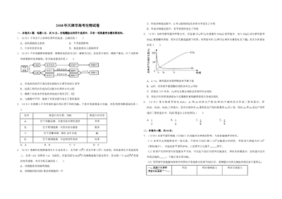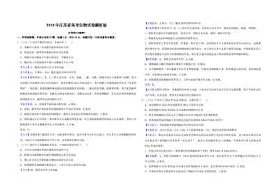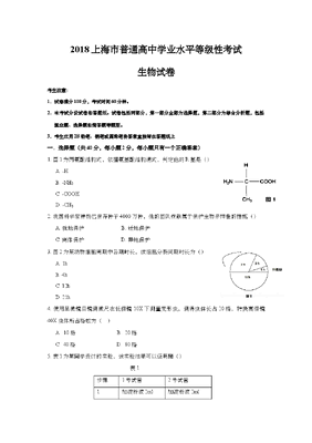 2018年上海市高中毕业统一学业考试生物试卷(答案版).doc