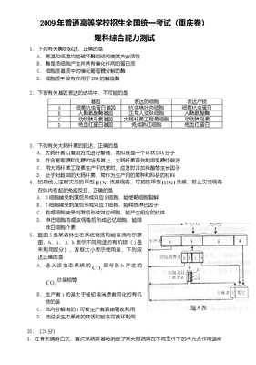 2009年高考重庆高考理综生物试题含答案word版.doc