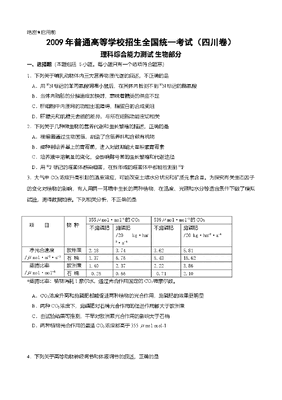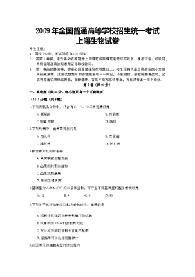 2009年上海市高中毕业统一学业考试生物试卷(原卷版).doc