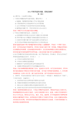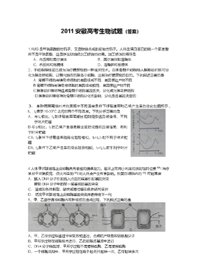 2011年高考重庆高考理综生物试题含答案word版.doc