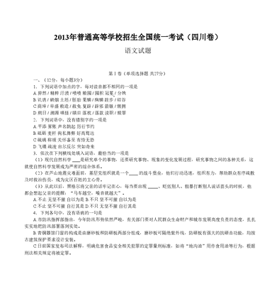2013年全国统一高考语文试卷(大纲版)(原卷版).doc