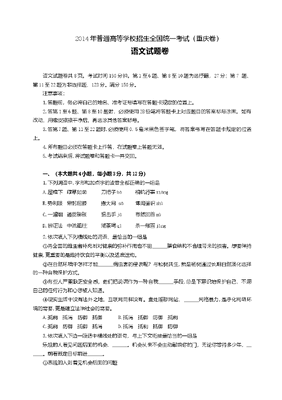 2014年重庆市高考语文试卷含答案.doc