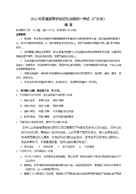 2015年广东高考语文试题及参考答案.doc