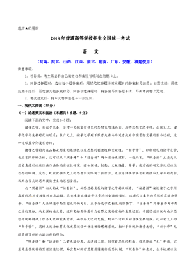 2018年高考真题 语文(山东卷)(原卷版).docx