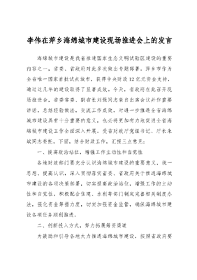 李伟在萍乡海绵城市建设现场推进会上的发言海绵城市建设是我省推进国家生态文明试验区建设的重要内容之一,省委、省政府对此多次做出专题部署。萍乡市作为全省唯一国家首批试点城市,获得中央财政12亿元资金支持,通过这几年的建设取得了显著成效。今天,省政府在此召开现场推进会,省委常委、副省长刘强同志亲自出席会议并作重要讲话,总结经验做法,交流工作成效,对进一步推进全省海绵城市建设具有十分重要的意义,也必将更加有力地促进全省海绵城市建设工作全面深入开展。受省财政厅党组书记、厅长朱斌同志委托,下面,结合财政工作,汇报三点意见:一、提高政治站位,增强工作主动性和自觉性各地财政部门要充分认识海绵城市建设的重要意义,统一思想、提高认识,深入贯彻落实省委、省政府关于推进海绵城市建设的各项决策部署,切实提高政治站位,增强工作的主动性和自觉性,积极配合住建、水利等部门制定完善相关制度办法,强化资金筹措力度,切实加强资金监管,确保海绵城市建设各项任务顺利推进。二、创新投入方式,努力拓展筹资渠道为鼓励和引导各地大力推进海绵城市建设,按照省政府要求,2017年和2018年省财政厅会同省住房城乡建设厅共筹措省级资金4800万元,通过奖补形式支持南昌市、吉安市、抚州市等3个省级试点城市建设。从试点的情况看,各试点市都能把握机遇,主动谋划,切实推进各项试点任务。《国务院办公厅关于推进海绵城市建设的指导意见》(国办发[2015]75号)和《江西省政府办公厅关于推进海绵城市建设的实施意见》(赣府厅发[2016]4号)都提出了在海绵城市建设中要坚持政府引导,广泛吸引社会资本参与的明确要求。各地财政部门要按照中央和省里要求,积极探索多元化投融资方式,大力倡导运用PPP模式,以及通过转让特许经营权、政府购买服务、股权合作、委托运营等方式,吸引社会资本共同推进海绵城市建设和运营。此外,也可借鉴省外其他试点地区经验,利用经过海绵体改造后的区域房价、地价升值之机,积极探索运用地产开发和海绵城市建设相融合的方式拓宽建设资金来源渠道。三、加强资金管理,提高使用效益各地财政部门要会同住建、水利等部门加强资金管理,切实加快预算执行,努力避免出现资金沉淀、钱等项目等情况。同时,要进一步完善资金绩效自评机制,对资金使用做到事前、事中和事后的跟踪问效。探索建立有效的奖惩机制和严格的责任追究制度,通过多方位的问效与问责,更好地规范资金管理,提高资金使用效益。同志们,海绵城市建设是百年大计,功在当代、利在千秋,各地财政部门一定要认真贯彻落实省委常委、副省长刘强同志的重要讲话精神,勇于探索,开拓创新,充分发挥财政职能作用,为海绵城市建设贡献智慧和力量,为促进全省生态文明建设而不懈努力!