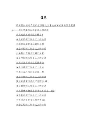 目录认真贯彻新时代党的组织路线为重庆改革发展提供坚强保证——在全市组织工作会议上的讲话中共重庆市委书记陈敏尔3在全省组织工作会议上的讲话中共陕西省委书记胡和平26在全市组织工作会议上的讲话中共扬州市委书记谢正义43在全市组织工作会议上的讲话中共济源市委书记张战伟54在全市组织工作会议上讲话中共七台河书记杨廷双74在全市组织工作会议上的讲话原中共渭南市委书记李明远87在全盟组织工作会议上的讲话中共锡林郭勒盟盟委书记罗虎在102在全县组织工作会议上的讲话中共洪洞县委书记郑步电125在全区组织工作会议上的讲话中共临汾市委常委、尧都区委书记陈纲 138坚定践行新时代党的组织路线奋力开创长沙县党的建设和组织工作新局面——在全县组织工作会议上的讲话长沙县委副书记、县长张作林 148在县委组织工作会议上的讲话县委常委、组织部部长王建多 168在县委组织工作会议上的讲话县委常委、组织部部长王建多 179在全县组织工作会议上的讲话洪洞县委常委、组织部长高涛 190在全县组织工作会议上的讲话县委常委组织部部长关威217在全市组织工作会议上的讲话佳木斯市委常委、组织部部长张晓燕236在全县组织工作会议上的讲话中共泗阳县委常委、县委组织部部长张大江264认真贯彻新时代党的组织路线为重庆改革发展提供坚强保证——在全市组织工作会议上的讲话中共重庆市委书记陈敏尔(2018年9月3日)同志们:今天,我们召开全市组织工作会议,时机重要,意义重大会议的主要任务是以习近平新时代中国特色社会主义思想为指引,深入学习贯彻习近平总书记关于党的建设和组织工作重要思想,贯彻落实全国组织工作会议精神,研究部署全市党的建设和组织工作。今年7月初召开的全国组织工作会议,是党中央在新时代召开的一次重要会议。总书记的重要讲话,深刻总结了党的十八大以来党的建设和组织工作取得的实践成果、理论成果,深刻阐述了新时代党的组织路线的科学内涵、实践要求,深刻指明了新时代党的建设和组织工作的方向目标、重大任务,是指引新时代党的建设和组织工作的纲领性文献。陈希同志对习近平总书记关于党的建设和组织工作重要思想作了全面阐释,提出了贯彻的具体要求,有助于我们加深理解、抓好落实。关于我市组织工作,文容同志还要作具体部署。下面,我讲几点意见。一、深入学习贯彻习近平总书记关于党的建设和组织工作重要思想学习贯彻全国组织工作会议精神,最重要的是全面领会习近平总书记关于党的建设和组织工作重要思想。党的十八大以来,总书记站在历史和战略的高度,紧紧围绕长期执政条件下建设一个什么样的党、怎样建设党这一根本问题,提出了一系列新理念新思想新战略,形成了关于党的建设和组织工作重要思想。全市各级党组织要认真学习领会习近平总书记关于党的建设和组织工作重要思想,在领会实质、结合实际、落到实处上下功夫,不断开创全市党的建设和组织工作新局面。深刻领会把握新时代党的建设和组织工作的地位和作用。总书记指出,伟大斗争、伟大工程、伟大事业、伟大梦想,其中起决定性作用的是党的建设新的伟大工程。我们党要领导人民进行伟大社会革命,必须勇于进行伟大自我革命。办好重庆的事情,关键在党,关键在人。总书记对重庆提出两点定位、两地两高目标和四个扎实要求,既是党中央对我们的关怀,也是对各级党组织和广大党员干部的鞭策。加快建设内陆开放高地、山清水秀美丽之地,努力推动高质量发展、创建高品质生活,迫切需要我们全面推进党的建设新的伟大工程,建设高素质干部队伍,增强各级党组织和广大党员的创造力、凝聚力和战斗力。只有把党的建设和组织工作抓好了,党组织坚强有力了,党员干部作用充分发挥了,各项工作才能有正确的方向和推进落实的坚强力量。深刻领会把握党的十八大以来党的建设和组织工作的实践成果和理论成果。党的十八大以来,以习近平同志为核心的党中央,以巨大的政治勇气和担当精神,开启了全面从严治党新征程,开创了党的建设新局面。总书记用八个坚持进行了深刻总结:一是坚持和加强党的全面领导;二是坚持新时代党的建设总要求;三是坚持党要管党、全面从严治党;四是坚持把党的政治建设摆在首位;五是坚持思想建设和制度治党同向发力;六是坚持贯彻新时期好干部标准;七是坚持强基固本;八是坚持正风肃纪、严惩腐败。其中最重要的是坚持和加强党的全面领导,归结起来就是形成了习近平总书记的核心地位,形成了习近平新时代中国特色社会主义思想。这八个坚持,是对党的建设和组织工作的系统总结,深化了我们党对马克思主义执政党建设规律的认识,我们必须长期坚持、深入贯彻。深刻领会把握新时代党的组织路线的科学内涵和实践要