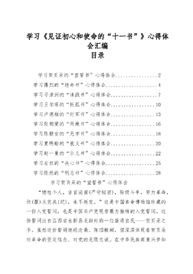 学习《见证初心和使命的十一书》心得体会汇编目录学习贺页朵的宣誓书心得体会.2学习傅烈的绝命书心得体会..4学习寻淮洲的请战书心得体会7学习王尔琢的托孤书心得体会..10学习卢德铭的行军书心得体会..13学习张朝夑的两地书心得体会..16学习陈毅安的无字书心得体会..18学习夏明翰的就义书心得体会..20学习赵一曼的示儿书心得体会..22学习左权的决心书心得体会.25学习陈然的明志书心得体会.28学习贺页朵的宣誓书心得体会牺牲个人,言首泌蜜(严守秘密),阶级斗争,努力革命,伏(服)从党其(纪),永不叛党。这是中国革命博物馆珍藏的一份入党誓词,也是中国共产党现存最为独特的入党誓词。这份誓词出自江西省永新县北田村的一位普通农民——贺页朵之手。虽然这份誓词饱经沧桑、陈旧模糊,但深深体现着贺页朵对革命的坚定信念、对党的无限忠诚。在中华民族离复兴梦如此接近的今天,重温这份独特的入党誓词,对党员干部具有重大的现实意义。作为党员干部必须从贺页多的宣誓书中,深刻领会坚定的理想信念,把对党的无限忠诚、绝对忠诚体现到实际行动之中。一要把忠诚体现在坚定不移维护党的利益上。纵观腐败分子大都有一个共同特点,那就是一旦当了官,就忘了我是谁,这些人丝毫谈不上对党忠诚。要知道,党员干部职务越高责任越大,对党忠诚的要求也越高。越是身居要位,越要不忘初心,以使命高于生命、责任重于泰山的浩然之气,始终不忘党和人民重托,决不能把权力私有化、商品化、特殊化、功利化。二要把忠诚体现在尽心竭力为民服务上。当官不是为了享受、为了挣面子、为了光宗耀祖。我们要严格厘清个人追求和党的宗旨的关系,把全心全意为人民服务落到实处,常思权力是谁赋予的、权力是为谁服务的,把工作为什么、掌权干什么、身后留什么等问题搞清楚,常怀公仆情,尽好公仆责。三要把忠诚体现在毫不犹豫服从大局上。观操守在利害时。在全面建成小康社会的征程上,党员干部必须要有高度的政治意识、大局意识、核心意识、看齐意识,正确对待个人利益,以散尽家财顾大局的豪迈气概,以分文不留献给党的无私品格,在勇于牺牲、甘于奉献中做好样子、当好表率。四要把忠诚体现在铁肩义胆敢于担当上。古人云:危身奉上,险不辞难曰忠。敢于担当不仅是人品,也是官品、是境界、是修养。党员干部为官理政,决不能把圆滑的处世观点和庸俗的处世原则带到工作中来,凡是党交给的任务,不管面临什么艰难险阻,不管遇到什么大风大浪,都要有铁的信念、铁的担当,勇往直前、攻坚克难。对于有违党的宗旨和党纪党规的人和事,要有对党的事业高度负责的精神,敢讲真话,敢于直言,敢于批评,敢于斗争,做伟大事业的奋进者、开拓者、奉献者、捍卫者。学习傅烈的绝命书心得体会拼将七尺男儿血,争得神州遍地红。这是革命先辈傅烈在临行前写给妻子陈才用绝命书中的诗句。面对死亡,面对牺牲,他如此坚定和不悔,虽壮志未酬,但初心不改,誓死也要将革命进行到底。我们要传承好革命先辈的伟大精神,牢固树立坚定的共产主义信念,不断为共产主义理想的实现贡献自己的光和热。一要做坚定理想信念的忠诚信仰者。对马克思主义的信仰,对社会主义和共产主义的信念,是共产党人的政治灵魂,是共产党人经受住任何考验的精神支柱。回顾革命战争年代,无数共产党人面对敌人的严刑拷打英勇不屈,因为他们坚信通过无数仁人志士的牺牲定会取得民族独立和人民解放;和平建设时期,无数共产党人为了建设社会主义而艰苦奋斗、公而忘私,因为他们坚信通过不懈努力定会实现国家富强和人民富裕;改革开放新时期,无数共产党人奋勇争先、务实创新,因为他们坚信通过不断开拓进取实现中华民族伟大复兴的中国梦。正是有了无数共产党人为了崇高理想的不懈拼搏和奋斗,我们才取得了举世瞩目的辉煌成就,我们比历史上任何时期都更接近中华民族伟大复兴的目标。我们党的奋斗历史昭示我们:坚定的理想信念,对于任何民族、任何国家、任何政党来说,是其生存发展的精神动力,是其攻坚克难的制胜法宝。二要做坚定理想信念的忠实捍卫者。理想信念就是共产党人精神上的钙,没有理想信念,理想信念不坚定,精神上就会缺钙,就会得软骨病。当前,广大共产党人的信仰是坚定的,理想是崇高的。但也有少数党员、干部理想信念出现了滑坡和动摇。在我身边就存在有的党员干部公开场合大讲理想信念,讲社会主义制度优