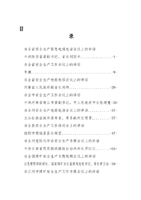 目录在全省安全生产紧急电视电话会议上的讲话中共陕西省委副书记、省长刘国中.-1-在全省安全生产工作会议上的讲话李谦-9-在全省安全生产电视电话会议上的讲话河南省人民政府副省长刘伟-20-在全市安全生产工作会议上的讲话中共河南省商丘市委副书记,市人民政府市长张建慧-30-在全州安全生产电视电话会议上的讲话..-37-文山壮族苗族州委常委、常务副州长贺勇-37-在全县安全生产工作推进会上的讲话信阳市商城县县长周哲.-47-在全州危险化学品安全生产专题会议上的讲话中共云南省西双版纳傣族自治州州长罗红江.-63-在全国煤矿安全生产专题视频会议上的讲话应急管理部副部长、国家煤矿安全监察局党组书记、局长黄玉治-70-在兰州市煤矿安全生产工作专题会议上的讲话中共兰州市委常委、常务副市长吕林邦..-86-在全市危险化学品安全生产专题会议上的讲话七台山市市长贾君..-91-在市安委会第十二次全体会议上的讲话中共青海省委常委、西宁市委书记王晓.-103-在全省加强两节期间安全生产工作视频会议上的讲话中共江苏省委常委、副省长、秘书长樊金龙-108-在全区安全生产工作暨2019年安委会第一次全体成员(扩大)会议上的讲话中共四川省广元市利州区委常委、常务副区长王超-116-在市政府安委会2018年第四次全体成员单位(扩大)视频会议上的讲话(摘要)中共重庆市委常委,市政府副市长吴存荣..-126-在市政府安委会2018年第四次全体成员单位(扩大)视频会议上的讲话(摘要)重庆市政府副市长李殿勋.-133-在区安全生产工作暨2019年安委会第一次全体成员(扩大)会议上的讲话广元市利州区人民政府党组成员、副区长杜剑.-139-在全区安全生产工作会议上的讲话成都市金牛区人民政府副区长任继斌-146-在全省安全生产与消防考核督导动员会议上的讲话河北省应急管理厅厅长李国华-149-在集团公司安全生产视频会议上的讲话——对当前事故多发原因的剖析国家能源投资集团有限责任公司副总经理、党组成员李东-156-在全省安全生产紧急电视电话会议上的讲话中共陕西省委副书记、省长刘国中(2018年11月14日,根据录音整理)昨天西安发生了11·13重大交通事故,导致10人死亡、2人受伤,给人民群众生命财产带来了严重损失。今天,我们怀着沉重的心情,召开全省安全生产紧急电视电话会议,深刻汲取事故教训,举一反三、强化措施,研究部署下一步安全生产工作。刚才,梁桂同志传达了国务委员、公安部部长赵克志同志的重要批示和省委书记胡和平同志的批示,省应急管理厅通报了西安重大交通事故的应对处置情况,西安市、省交通运输厅作了发言,明朗同志安排部署了全省道路交通安全大排查大整治工作,请大家认真抓好工作落实。下面,我就近期安全生产工作再强调五点意见。一、认清严峻形势,切实增强做好当前安全生产工作的责任感、使命感西安11·13重大交通事故,是今年以来我省发生的首起重大事故。这起事故,发生在全省深入开展道路交通、煤矿、危险化学品安全三项攻坚行动之际,发生在省委、省政府多次部署较大以上事故防范、开展集中执法行动之际,发生在省委、省政府、省安委会刚刚安排冬季和机构改革期间安全生产工作之际,令人十分痛心。省委、省政府一直高度重视安全生产工作。今年以来,在安全生产上投入了更多的人力、财力,保持了安全生产形势的总体稳定。但一起事故,就让之前的很多努力付诸流水,一个地方的工作不到位,就使全省总体稳定的安全形势发生了重大改变。血的教训再一次告诫我们,抓安全生产在任何时候都不能有丝毫放松,也再一次警醒我们,树立以人民为中心的发展思想,首先就是要体现在关爱人民群众生命安全上,离开了生命安全,以人民为中心就成了空喊的口号。习近平总书记对安全生产工作高度重视,反复强调发展决不能以牺牲人的生命为代价。我们一定要深入学习习近平总书记关于安全生产的重要论述,切实把抓好安全生产的政治责任扛在肩上,始终把人民生命安全放在首位,以对党和人民高度负责的态度,不断强化底线思维和红线意识,抓细抓实抓常,坚决把安全生产各项措施落到实处,坚决遏制重大事故发生。二、深刻汲取事故教训,扎实开展道路交通领域安全大排查、大整治道路交通安全是安全生产的重中之重,全省安全生产工作特别是道