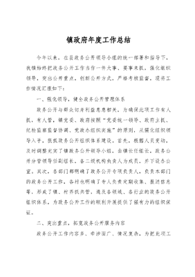 镇政府年度工作总结今年以来,在县政务公开领导小组的统一部署和指导下,我镇始终把政务公开工作当作一件大事、要事来抓,强化组织领导,突出公开重点,创新公开方式,严格考核监督,现将工作情况汇报如下:一、强化领导,健全政务公开管理体系政务公开与群众切身利益息息相关,为确保此项工作有人抓,有人管,镇党委、政府按照党委统一领导、政府主抓、纪检监察监督协调、党政办组织实施的原则,从强化组织领导入手,狠抓政务公开组织体系建设。首先,根据人员变动,及时调整充实了镇政务公开领导小组,由镇长任组长,政务公开分管领导任副组长,各二级机构负责人为成员,并下设办公室。其次,各部门都明确了政务公开专项负责人,负责本部门的政务公开工作,各村也明确了专人负责定期收集、报送信息等,形成了镇、村齐抓共管,遍及各领域、各行业的政务公开组织体系,为政务公开工作的顺利开展提供了强有力的组织保证。二、突出重点,拓宽政务公开服务内容政务公开工作内容多、牵涉面广、情况复杂,为把此项工作抓好、抓实,我们始终坚持真实公正、注重实效、利于监督的原则,在努力拓宽政务公开工作内容的同时,重点狠抓了以下几个方面的公开:(一)围绕决策抓公开。首先是对上级政策,只要是与群众利益相关的,必须公开;只要是涉及行政许可的,必须公开;只要是应该人人遵守的,必须公开;只要是需要社会监督的,必须公开。一年来,我们通过广播、会议、文件、公开栏、公开信等形式面向社会公开了粮食直补、粮种补贴、降低农业税率等一系列保护粮食生产和增加农民收入的政策7条,促进了此项工作的全面落实。同时,我们公开了本镇长远发展规划、年度发展计划、财政预决算、重点基本建设、重要工作开展等镇内决策21条,促进了我镇经济和社会事业的全面发展。(二)围绕村务抓公开。始终围绕落实村民的知情权、决策权、参与权、监督权作文章,不断开拓创新。首先是规范了村务公开的内容,重点公开了财务收支情况、农民负担费用、土地征用补偿、一事一议筹资筹劳情况、救灾救济款物发放等事项29条。其次是完善公开的形式。各村在交通要道、集居点设立一个固定的永久性村务公开栏,并辅以广播、公开信等形式进行公开。为了使村务公开落到实处,不流于形式,我们狠抓了监督机制的完善,一是实行依法监督,将村务公开始终贯穿民主选举、民主管理、民主决策之中,极大地调动了村民参政议政热情;二是抽调人员组成专班,不定期对村务公开进行监督检查。(三)围绕收费项目和收费标准抓公开。为了增强行政事业性收费和涉农收费部门收费行为的透明度,我镇按照统一公示内容、公示范围、公示形式的要求,做到了全面公开,不留死角。对全镇收费主体的所有收费项目、收费标准和收费依据,通过公示栏以及政府信息公开网向社会进行了公开。重点是加大对部门涉农收费、医疗收费、学校收费项目和标准的公开力度,让群众明白交费、放心交费,保障了群众的切身利益,从源头上遏制了部门乱收费行为。(四)围绕热点和难点抓公开。我镇在全面落实各项政务公开工作的同时,还突出狠抓了群众关注较多、反映较强、疑虑较多的热点、难点问题的公开。一是招投标公开。镇政府规定,凡是村以上的重大工程或重点建设项目,都要分级面向社会实行公开招标、投标,决不允许不公开、半公开、假公开,搞暗箱操作。二是土地与房屋征收、土地流转以及宅基地使用情况。我镇现在大力发展乡村旅游,今年又启动了鲜花小镇建设,所以土地流转、土地征收频繁发生,这一块也是最容易造成纠纷和矛盾的工作内容,故此我镇特别注重这一块的信息公开。三、探索形式,构筑政务公开执行网络为了增强政务公开的深度和广度,确保政务公开取得实效我们在实践中不断探索,形成了一些政务公开的有效形式。一是栏、墙公开形式,如政务公开栏、政务公开板、政务公开墙等。二是传媒公开形式,如利用宣传车、微信群、广播进行公开等。三是资料公开形式。如编发办事指南、公开信、明白卡等。四是活动公开形式,如召开各种会议,座谈、设置举报箱等。通过上述形式,基本构筑起了全镇政务公开网络,使政务公开基本做到了家喻户晓,人人皆知,确保了我镇政务公开工作的实际成效。四、强化责任,加强政务公开结果考核政务公开没有责任就难以开展,没有监督,就难以落实,就会流于形式。为此,镇党委、政府从强化工作责任入手,加强政务公开的监督考核。一方面,镇党委、镇政府将政务公开工作作为全镇党风廉政建设和文明创建的考核范畴,纳入各村、各部门的年度目标考核,与干部绩效挂钩。另一方面,镇纪委加强监督,对公开不及时、公开效果不理想、公开中弄虚作假、侵犯群众权利的单位从严查处,出现重大问题的,从严追究分管领导和直接责任人的责任,保证了政务公开的严肃性。五、政务公开的成效及存在的问题政务公开工作是一项长期的任务,镇党委、政府始终将其提到重要议事日程上来落实,不断完善和规范政务公开制度。各单位各司其职,各负