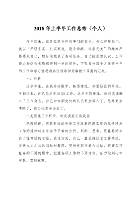 2018年上半年个人工作总结模板开年以来,在各位领导和同事们的指导、关心和帮助下,我以严谨务实、扎实高效、敬业奉献、追求完美的标准严格要求自己,较好地完成了各项任务,自己的思想认识、工作能力和综合素质都得到一步的提升。下面我分四个方面将半年的工作和学习情况向各位领导和同事做个简要的汇报。一、收获这半年来,是我开阔眼界、熟悉情况、积累经验的阶段。年初以来,自己先后参与XX工作。这半年的磨练,使我真正融入了工作角色。自己对本职岗位的认识更加深入了,思路更加清晰了,能力也更加全面了。一是强化三个环节,切实提高工作效能把握规律。想要更好的开展工作就要把握工作的规律特点工作的规律特点来自于日常的分析、判断、思考,更重要的来自于经常性的总结。在这方面,自己一直坚持记录工作感悟,坚持办文之后的归纳和整理,坚持定期回看和总结,把握各项任务的不同的要求,把握各项工作的不同内容。努力做到心中有数、驾轻就熟。前置学习。根据岗位特点,着力强化学习的敏感性、有序性和动态性。建立知识储备目录,围绕单位中心工作、领导关注热点、近期工作安排等,提前着手搜集整理书籍、报纸、互联网、上级精神、领导批示和以往材料中的有关内容。在学习的基础上加以梳理,并及时向其他同事学习。沟通协调。自己工作过程中不断揣摩和体会,我感觉良好的沟通协调往往可以起到事半功倍的效果。与领导沟通时,做到底数清、情况明,与上级单位沟通时,做到两个明确,明确工作的具体要求,明确具体联系人;与基层单位沟通协调时,做到坚持原则,注重技巧,在确保工作任务完成的基础上争得基层的理解,保持良好的关系。二是统筹三个关系,合理把握工作节奏主与次的关系。面对纷繁复杂的工作,自己通过旁听区委的各种会议,关注领导主要活动,牢牢抓住不同阶段的中心工作,分清主要与次要,分清重点和一般,做到突出重点,兼顾全面,有主有次,有张有弛,忙而不乱。轻与重的关系。坚持小事快办、大事稳办的原则,对于日常一般性的、不牵动大局的工作,速来速办,来则即办,突出一个快字,用最短的时间抓紧完成;对于大项任务,做到快中有慢,紧中有缓,在筹划构思上多下功夫,待思考成熟再迅速进行。急与缓的关系。坚持缓中求快,急中求妥,对于时间上要求并不急的工作,不等不拖;对时间要求比较紧的工作,自己首先保持头脑冷静,尽可能开动脑筋调动平日里掌握的一些具体情况,搞好统筹再开展,努力做到重点突出、事理清楚,避免粗技大叶、急中出乱。三是增强三个意识,始终保持工作状态想要干好工作必须具备良好的精神状态和饱满的热情,说到底就是让自己始终处于最佳状态,时刻能够贡献出最有效的文字成果。在这方面自己重点强化了三种意识。责任意识。一方面是敬业,脚踏实地,扎实锻炼,干一行爱一行,钻一行,不断增强主动性,积极改进工作;一方面是进取,时刻牢记自己是党员,时刻以最高的标准要求自己,不断强化积极进取、争创一流的精神动力。和谐意识。用辩证的观点和乐观的心态看待工作,正确认识自己的工作和价值,积极克服急功近利的浮躁情绪,克服爱慕虚荣的不良作风,克服怕吃苦、得过且过的错误思想,始终保持一名共产党员的本色。团队意识。在思想上讲团结,做到思想统一,步调一致;在工作上讲团结,拾遗补缺、协调配合、形成合力;在生活上讲团结,主动关心同事,帮助同事,增强工作的凝聚力和向心力。借这个机会,要特别感谢在过去的半年中,各位领导和同志们给予我的帮助,大家的支持和鼓励让我心中倍感温暖,让我更加珍惜与大家一起共事的情谊。二、体会自己工作半年来的体会可以概括成一个词,那就是:坚持。工作进步来自锲而不舍地努力。作为一名新人,自己并不缺少危机感和恐慌感,开始着手工作的时候比较急,恨不得一夜之间成为行家里手,感觉自己下了很大的功夫,但短期内成效并不明显,相反问题却表现得很突出。经过这半年的工作,我切身感受到,要想真正提高工作水平,不能靠短期突击恶补,必须扎扎实实,一步一个脚印,循序渐进的量变积累,才能最终实现厚积薄发的质变升华。这是个长期的过程,中间不能有任何的急躁、犹豫和迟疑,必须一刻也不放松的坚持。能力提高来自坚持不懈地学习。想做好工作,必须将学习作为一种习惯。学习是我所处岗位的生命线,靠学习获取各种知识提升能力,就像植物汲取养分不断生长,不坚持学习,知识就会枯萎、能力就会滞后。在这种形势下,学习容不得一丝一毫的松懈。放松了对自己的要求,就跟不上经济社会发展的步伐,就会产生工作与要求不对称,自己的工作质量必然降低必然达不到领导的要求。境界提升来自持之以恒地修炼。我感觉,个人的境界对做好工作十分重要。境界反映的是一个人在精神方面的高度,反映着个人的品质和价值。作为机关的一员,经常要面对繁重而枯燥的工作,而自己的境界就像一只无形的手,影响着工作态度、工作效率、工作水平,甚至左右了人生的结局。境界的