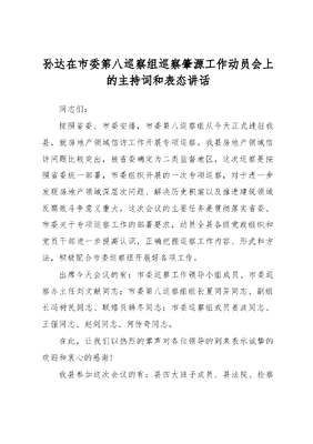 孙达在市委第八巡察组巡察肇源工作动员会上的主持词和表态讲话同志们:按照省委、市委安排,市委第八巡察组从今天正式进驻我县,就房地产领域信访工作开展专项巡察。我县房地产领域信访问题比较突出,被省委确定为二类监督地区,这次巡察是按照省委统一部署,市委组织开展的一次专项巡察,对于进一步发现房地产领域深层次问题、解决历史积案以及推进建筑领域反腐败斗争意义重大。这次会议的主要任务是贯彻落实省委、市委关于专项巡察工作的部署要求,动员全县各级党政组织和党员干部进一步提高认识,正确把握巡察工作内容、形式和方法,积极配合市委巡察组开展好各项工作。出席今天会议的有:市委巡察工作领导小组成员、市委巡察办主任刘文献同志;市委第八巡察组组长夏同芳同志、副组长冯树民同志、联络员韩冬同志;市委巡察组成员姜波同志、王强同志、赵剑同志、何传奇同志。在此,让我们以热烈的掌声对各位领导的到来表示诚挚的欢迎和衷心的感谢!我县参加这次会议的有:县四大班子成员、县法院、检察院、公安局主要负责同志、县纪委监委领导班子成员、县巡察办主任、各巡察组长、县直各部门主要负责同志、税务部门主要负责同志、各乡镇(场)党委书记、各园区主要负责同志、各社区党工委书记。下面,我代表县委班子就配合支持做好本次专项巡察工作郑重表态。第一,树牢政治意识,提高思想认识。推进市县巡察是《党章》和《巡视工作条例》规定的重要制度,是严肃党内政治生活,净化党内政治生态,加强党内监督的重要手段和制度创新,也是贯彻落实四个全面战略布局,进一步推进党风廉政建设和反腐败工作的客观要求。由于历史原因,当前我县房地产领域到了矛盾集中爆发期,信访问题多发频发,这次市委巡察组到我县开展专项巡察,是对我县房地产领域突出问题的一次会诊把脉,有利于我们揭开盖子,触及解决深层次问题,更是对我县各级领导班子和领导干部的一次政治体检,对于我们坚定政治立场和政治方向,遵守党的纪律和党的规矩,全面营造风清气正的政治生态,意义非常重大。同时,也为我们提供了一次很好的学习、改进、提升工作的机会,将帮助我们更加全面、客观、准确地分析实际工作状况,更加深刻分析、认识和把握工作的努力方向和改进重点,我们一定要站在政治和全局的高度,强化责任担当,深刻认识本次巡察工作的重要作用、重大意义,把思想和行动统一到市委巡视巡察工作要求上来,以良好的精神状态和扎实的工作作风,接受巡察监督。第二,主动做好服务,全力支持配合。配合市委巡察组做好巡察工作,是我们的政治责任和应尽义务,全县上下要有政治敏感性和政治觉悟,高度重视、妥善安排、搞好配合、全力服务,确保巡察工作顺利进行。要严肃对待。从我做起,从常委做起,从县处级领导做起,当好反映情况、自查自纠、改进提高的表率,把接受巡察监督过程作为查找差距、改进工作的过程。要严守纪律。严格遵守政治纪律、组织纪律、保密纪律等相关规定,不利于巡察的话不说,不利于巡察的事不做,不打听、不干扰,不传播打探小道消息。要严格请销假制度,县处级领导、县直各单位主要领导、各乡镇党政主要领导,尤其是涉及房地产领域的部门领导巡察期间一律不准外出,坚守岗位,保持通讯畅通,随叫随到。要严谨认真。每位同志都要本着对党的事业负责、对组织负责、对同志负责、对人民群众负责、对肇源发展负责的态度,实实在在地汇报工作,客观公正地提供情况,实事求是反映问题,既不文过饰非,也不无事生非,一是一、二是二,保证市委巡察组全面真实准确,了解和掌握我县的情况。要做好服务保障。生活上妥善安排,工作上全力配合,在食宿、交通和办公条件等方面提供优先保障,尤其是要畅通信访渠道,排除各方干扰,为巡察了解情况创造最优环境、提供最好条件。第三,严格责任落实,狠抓问题整改。巡察工作的最终成效,体现在整改落实上。全县上下一定要牢固树立四个意识,坚持问题导向,狠抓问题整改。要把立行立改、边查边改贯穿接受巡察的全过程,对巡察组指出的问题,一定深刻剖析原因,列出整改清单,压实责任、明确时限、逐一分解,把发现的问题不折不扣整改到位,把巡察组的意见要求不折不扣落实到位。要对巡察组发现的问题线索,不管涉及到哪个单位和哪个人,一定按照要求认真核查,依法依规严肃处理。要吸取教训、完善制度,建立长效机制,做到举一反三、防微杜渐,防止问题重复发生,切实把巡察成果转化为改进作风、深化改革、推动发展、服务民生、促进和谐的具体实践。刚才,市委巡察工作领导小组成员、市委巡察办主任刘文献同志,市委第八巡察组组长夏同芳同志分别作了讲话。刘主任从三个方面,深刻阐述了这次专项巡察的重要意义,代表市委对我县如何贯彻落实巡察工作提出了充分理解信任、坚决支持配合、全面整改落实三点具体要求,讲的很实在,要求很明确;夏组长结合市委统一安排部署,对这次巡察工作的重点任务和工作方式进行了详细说明,并对如何配合开展