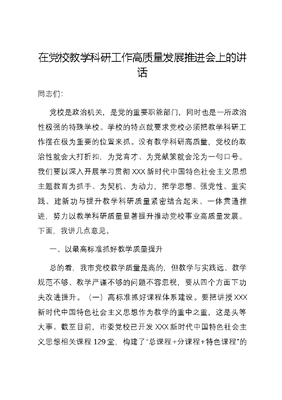 在党校教学科研工作高质量发展推进会上的讲话.docx