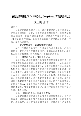 在县委理论学习中心组DeepSeek专题培训会议上的讲话.docx