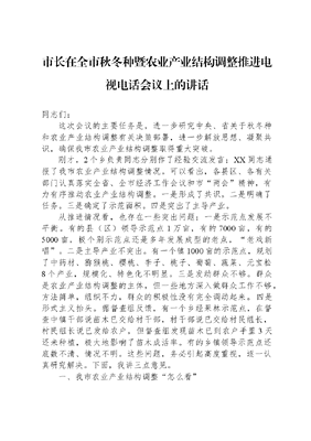 市长在全市秋冬种暨农业产业结构调整推进电视电话会议上的讲话.docx
