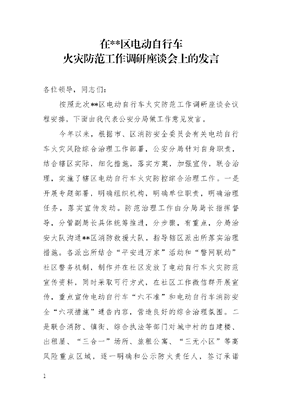 在电动自行车火灾防范工作调研座谈会上的发言.docx