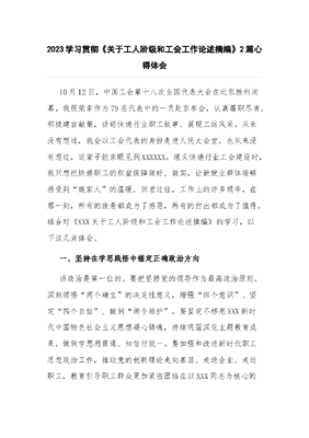 (2篇)2023学习贯彻《关于工人阶级和工会工作论述摘编》心得体会.docx
