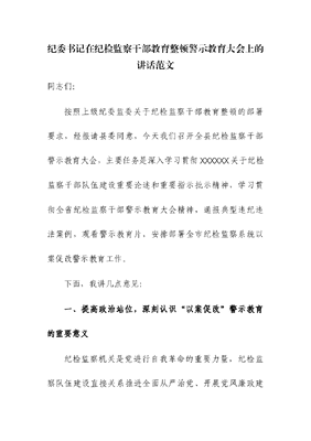 书记在纪检监察干部队伍教育整顿警示教育大会上的讲话.docx