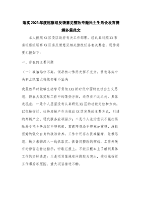 落实2023年度巡察组反馈意见整改专题民主生活会发言提纲多篇.docx