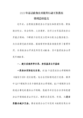 2023年基层政务公开提升行动工作落实情况总结.docx
