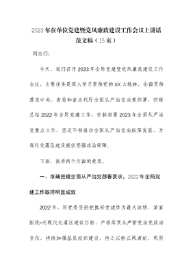 2023年在单位党建暨党风廉政建设工作会议上讲话.docx