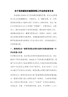 关于党的建设的重要思想工作会的发言.docx