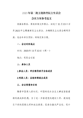 2023年第二批主题教育民主生活会会议方案.docx