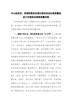 中心组发言:把准职责定位 强化责任担当以高质量组织工作服务全域高质量发展.docx
