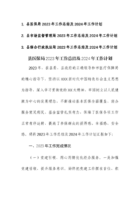 (3篇)医保局、市场监督管理局、综合行政执法局2023年工作总结及2024年工作计划.docx