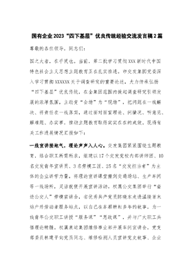 (2篇)国有企业2023“四下基层”优良传统经验交流发言稿.docx