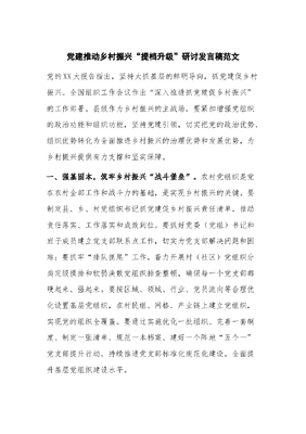 党建推动乡村振兴“提档升级”研讨发言稿.docx