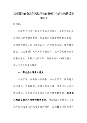 县副县长在全县作风纪律教育整顿工作会上的讲话.docx
