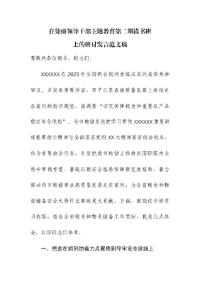 在处级领导干部主题教育第二期读书班上的研讨发言.docx