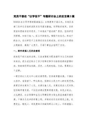 (3篇)党员干部在“以学促干”专题研讨会上的发言稿.docx
