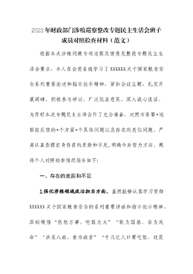2023年财政部门涉粮巡察整改专题民主生活会班子成员对照检查材料.docx