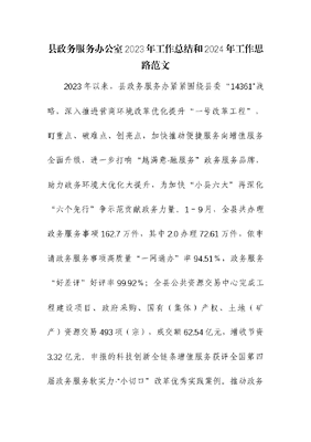 政务服务办公室2023年工作总结和2024年工作思路.docx