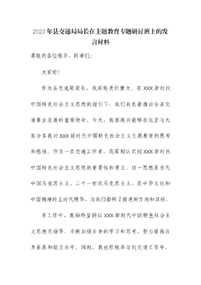 2023年交通局局长在主题教育专题研讨班上的发言材料.docx