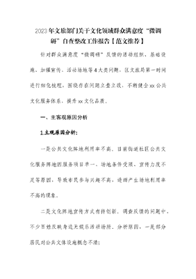 2023年文旅部门关于文化领域群众满意度“微调研”自查整改工作报告.docx