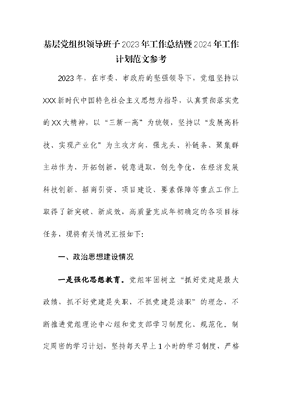 基层党组织领导班子2023年工作总结暨2024年工作计划参考.docx