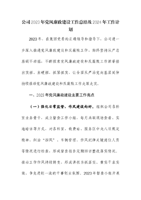 公司2023年党风廉政建设工作总结及2024年工作计划参考.docx