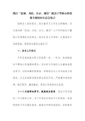 践行“忠诚、为民、公正、廉洁”政法干警核心价值观专题组织生活会发言.docx