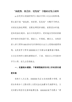 (4篇)“扬优势、找差距、促发展”专题研讨发言材料.docx