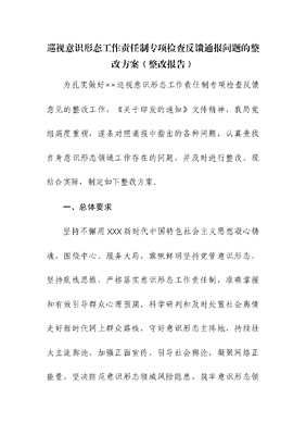 巡视意识形态工作责任制专项检查反馈通报问题的整改方案(整改报告).docx