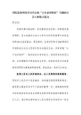 学院党委理论学习中心组“六个必须坚持”专题研讨会上的发言.docx