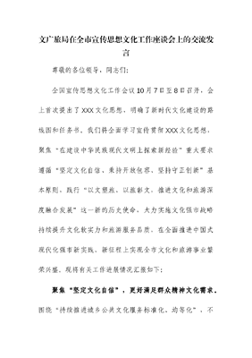 文广旅部门关于宣传思想文化工作座谈会上的交流发言.docx