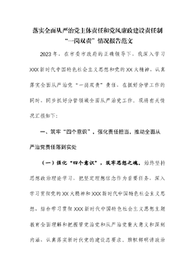 落实全面从严治党主体责任和党风廉政建设责任制“一岗双责”情况报告.docx