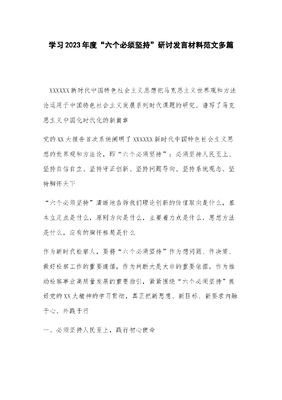 学习2023年度“六个必须坚持”研讨发言材料多篇.docx