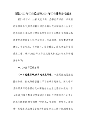 街道2023年工作总结和2024年工作计划参考范文.docx
